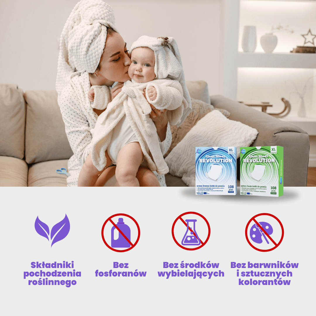 Arkusze do prania Clean Sheet Revolution zostały stworzone z myślą o środowisku. Nie zawierają fosforanów, parabenów ani sztucznych barwników, dzięki czemu są delikatne zarówno dla ubrań, jak i dla natury.